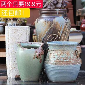 手工粗陶陶瓷花盆复古陶罐多肉花盆高筒盆紫砂多肉盆大...