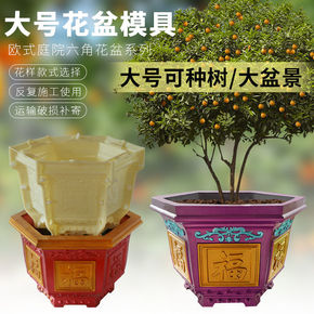 花盘水泥花盆模具盆六角欧式盆景模子混泥土模型大号特...