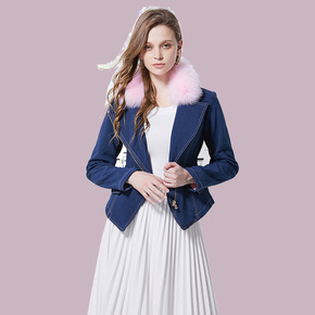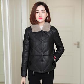 新款真皮羽绒服女冬短款翻领水貂毛海宁绵羊皮皮衣皮草...