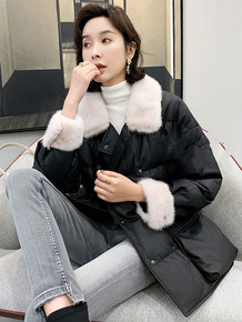2021冬新款女水貂领皮草海宁真皮皮衣中长款宽松绵...