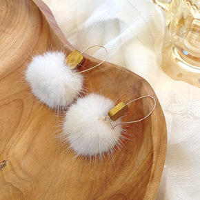 韩国气质网红秋冬耳环女百搭毛球球毛绒高级感耳钉水貂...