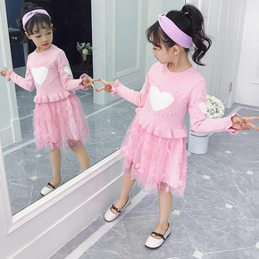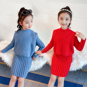 女童水貂绒毛衣套装童装2021洋气裙子秋冬装儿童连...