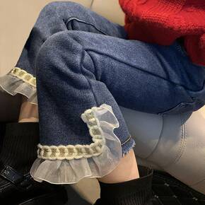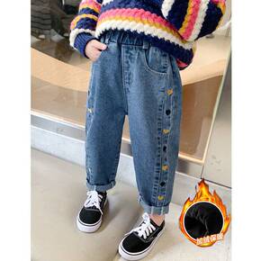 女童加绒牛仔裤2022冬装新款中小童韩版春冬长裤儿...
