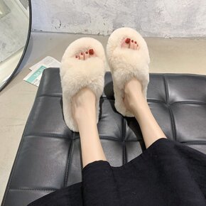 秋毛毛拖鞋女一字水貂毛韩版2021新款倒三角厚底外...