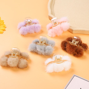 冬款超可爱水貂毛兔子发簪流苏对夹少女学生发饰汉服儿...