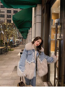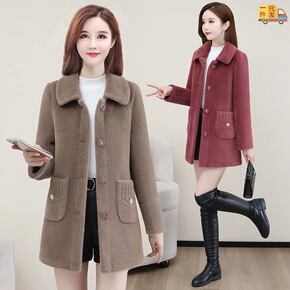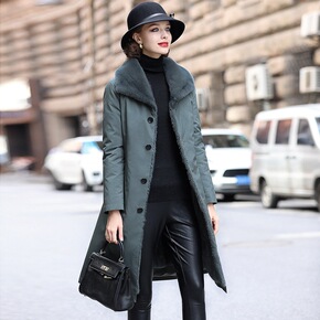 皮毛一体外套女2022年秋冬新款中长款修身加厚黄金...
