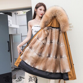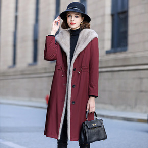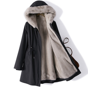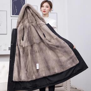 新款冬季服可拆卸水貂内胆皮毛一体中长款貂绒皮草大码...