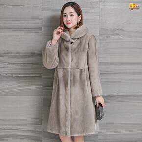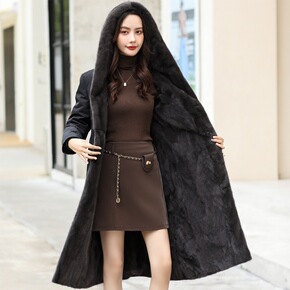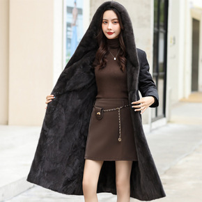 海宁皮草中长款貂皮大衣女2021秋冬新款整貂仿水貂...