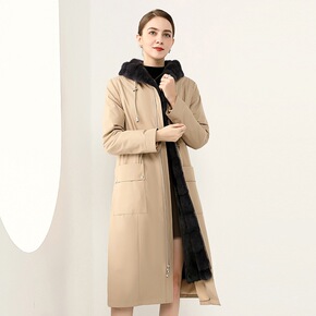 2021新款服女皮青根貂毛内胆毛可拆卸中长款水貂大...