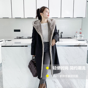派克服女2021新款可拆卸水貂毛内胆尼克中长款整貂...