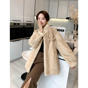 欧货网红2022冬季新款外套女仿貂皮水貂绒短款天鹅...