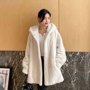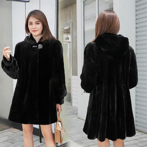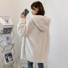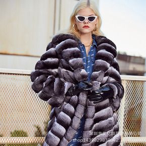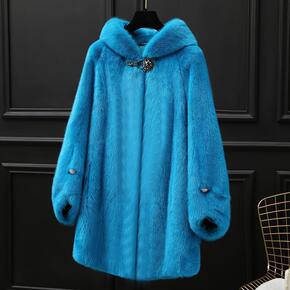 厂家批发青紫蓝龙猫海宁皮草獭兔毛女中长款水貂外套貂...