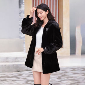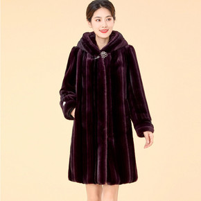 海宁皮草妈妈装水貂毛貂皮大衣长款过膝整貂貂毛加厚外...