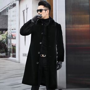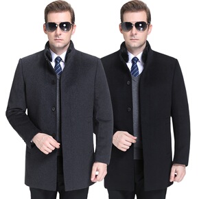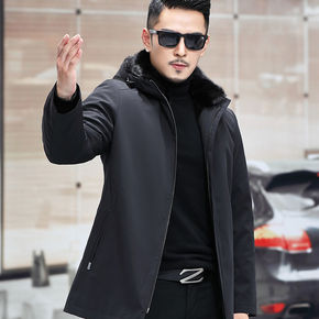 毛呢大衣男中长款冬季中年水貂毛领保暖外套爸爸装黄金...