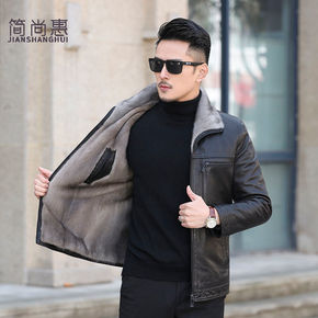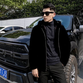 2021秋冬新款皮毛一体男士加绒外套羊毛呢子上衣羊...