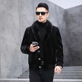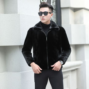 海宁皮衣男士水貂整貂内胆皮毛一体油蜡绵羊皮草夹克大...