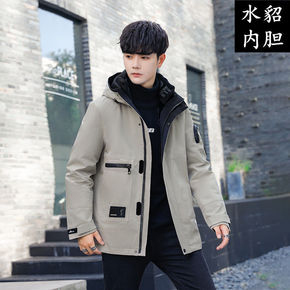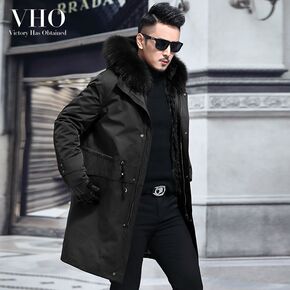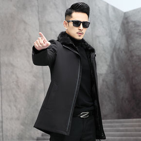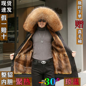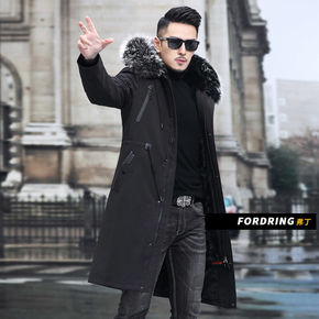 派克服男士水貂内胆貉子毛领长款外套皮毛一体过膝连帽...