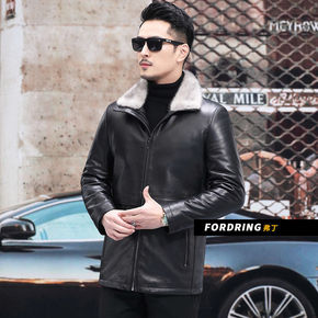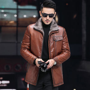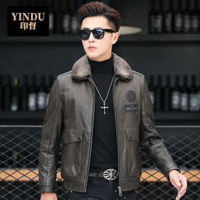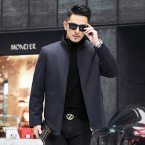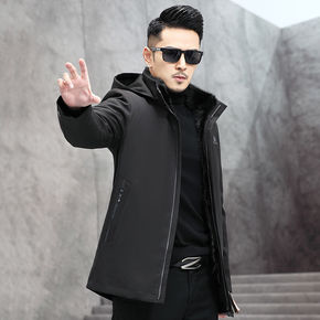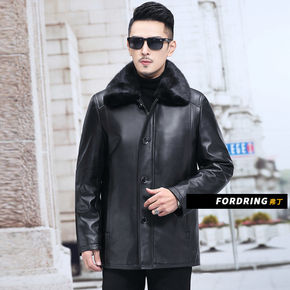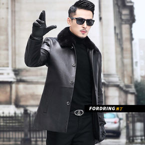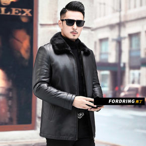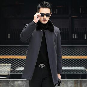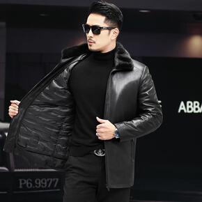 海宁冬季皮衣男士绵羊皮外套水貂毛领羽绒服翻领皮夹克...