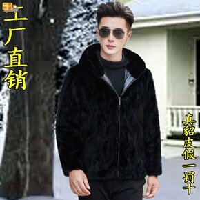 进口水貂毛皮大衣海宁整貂皮草外套加厚貂绒男士皮衣...