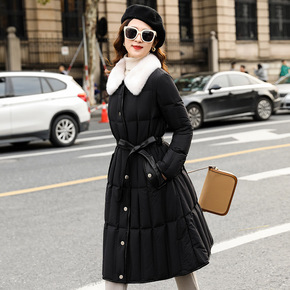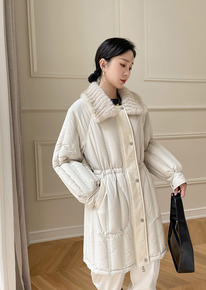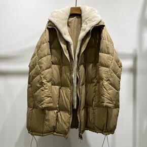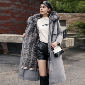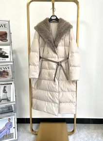 MIYUN进口水貂编织毛领白鹅绒羽绒服中长款皮草外...