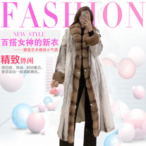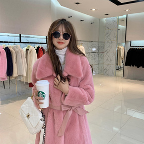 欧洲站2021冬季新款中长款水貂毛拼接羊羔毛大衣年...