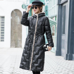 2022海宁新款水貂连帽真皮羽绒长款真皮绵羊皮修身...