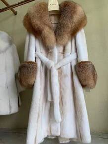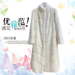 2022新款进口整貂天鹅绒翻领长款珍珠白女貂皮大衣...