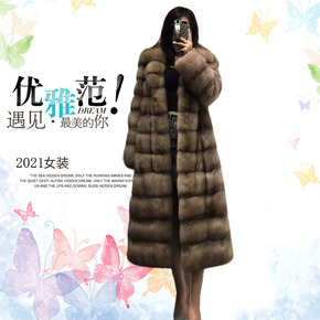 2021新款俄罗斯紫貂西装领长款女紫貂大衣皮草外套...