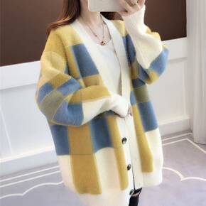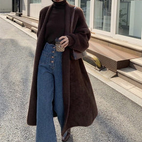 秋冬新款水貂绒开衫毛衣外套女针织宽松慵懒风中长款大...