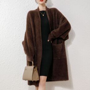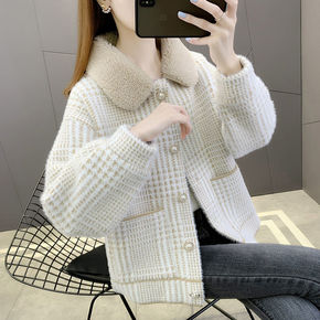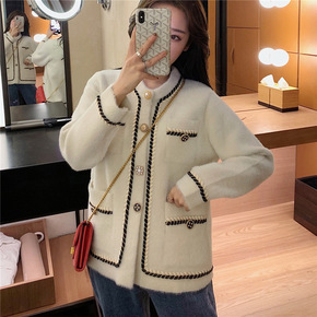 2022秋冬新款水貂绒大衣针织开衫外套女韩版长款气...