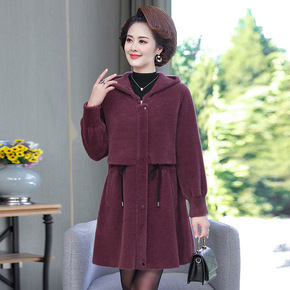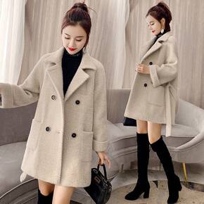 2022秋冬新款水貂绒毛呢外套中长款时尚百搭加厚系...