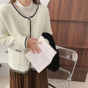 2022秋冬款仿水貂绒短款撞色宽松外套女小香风百搭...