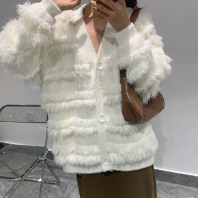 2022早春款水貂绒毛衣外套女春百搭韩版宽松流苏复...