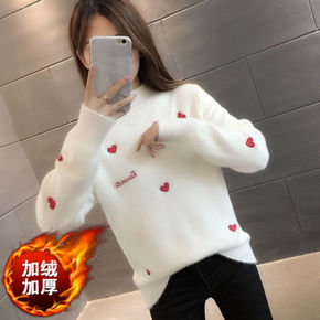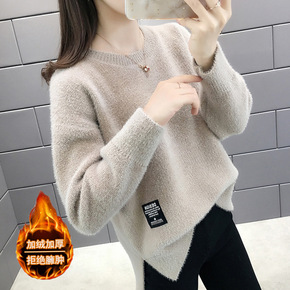 大码仿水貂绒加厚毛衣女秋冬季2021新款套头针织衫...