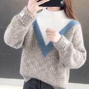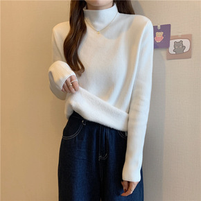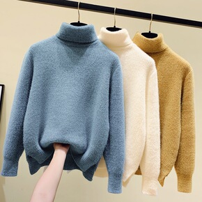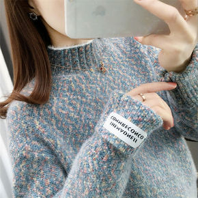 2021年秋冬新款仿水貂绒半高领宽松毛衣女百搭上衣...
