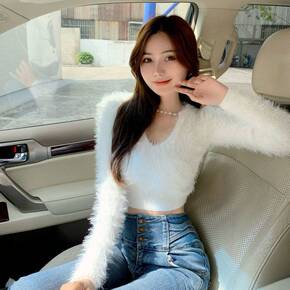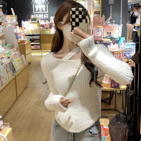 高腰别致毛衣女冬季外穿设计感小众短款水貂绒加厚保暖...