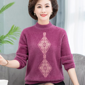 2021秋冬季妈妈装仿水貂绒宽松毛衣中老年上衣加厚...