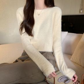 仿水貂绒针织衫女装秋冬季内搭毛衣2021新款别致打...