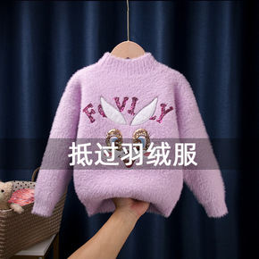 2021中小童宝宝水貂绒毛衣秋冬加厚套头女童洋气打...