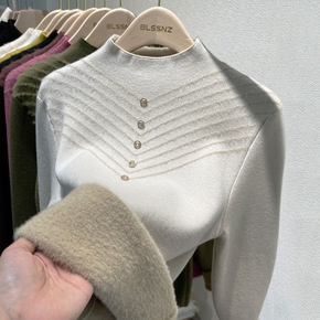 半高领加绒水貂绒毛衣女秋冬加厚洋气修身一体绒上衣打...