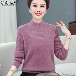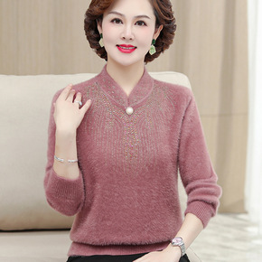 妈妈装毛衣秋冬装加厚水貂绒上衣50岁中老年女宽松保...
