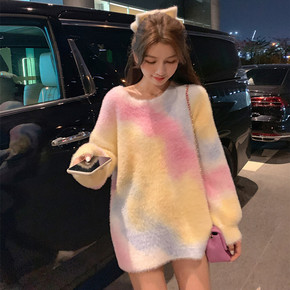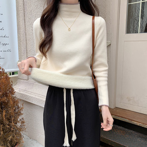 针织衫秋冬韩版一体水貂绒加厚半高领打底针织毛衣...