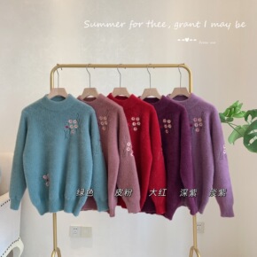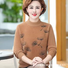 妈妈春秋冬装水貂绒毛衣中年女短款中老年人宽松加大码...
