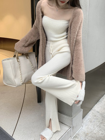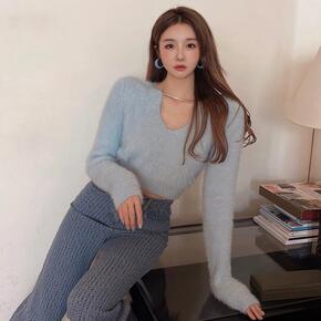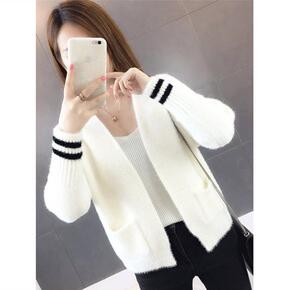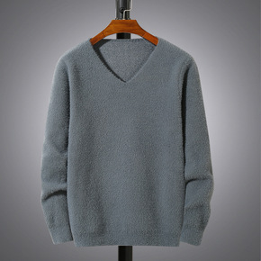 水貂绒V领秋冬季毛衣男女同款休闲一体水貂绒打底衫 ...