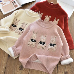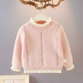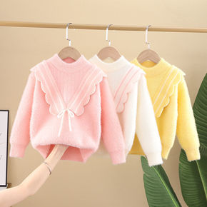 包邮女童水貂绒反季毛衣外穿2021新款加绒中童长袖...