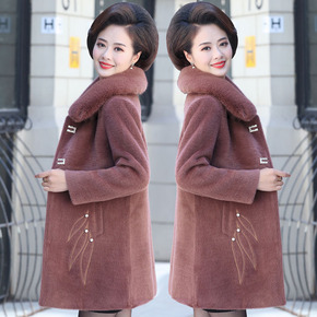 妈妈毛呢外套水貂绒中年女秋冬装长袖上衣洋气短款中老...