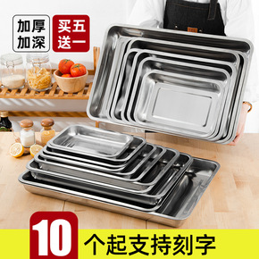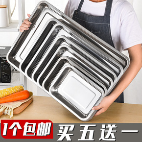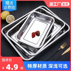 不锈钢方盘不锈钢托盘不锈钢铁盘子长方形餐盘烧烤盘饭...