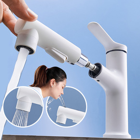 抽拉式水龙头冷热家用卫生间台盆台上盆洗脸盆洗手池白...
