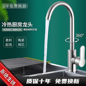 包邮水龙头厨房家用冷热旋转全铜单冷双用不锈钢洗菜盆...