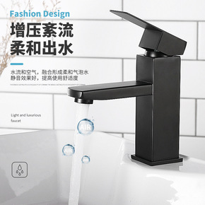 不锈钢黑色四方面盆水龙头 不锈钢冷热龙头卫生间洗脸...